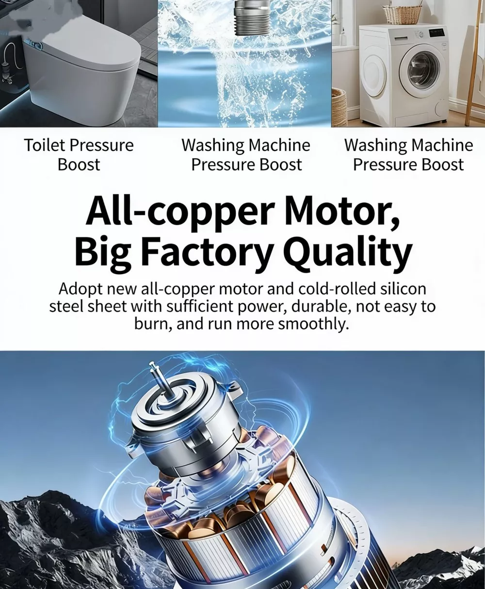 Повышение давления бытовой водопроводной воды/солнечной трубы: адаптируется к различным сценариям водоснабжения низкого давления, таким как бытовые водопроводы и солнечные системы водоснабжения, обеспечивая стабильное повышение давления во всех сценариях.