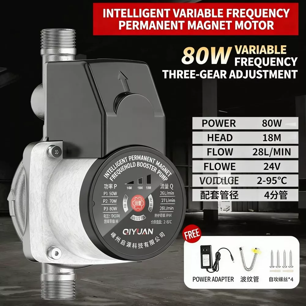 Интеллектуальный бесшумный повысительный насос с переменной частотой и постоянным магнитом, оснащенный профессиональной технологией переменной частоты с постоянными магнитами, обеспечивает стабильное, эффективное и бесшумное решение для повышения давления для бытового водоснабжения, комплексно решая различные проблемы, связанные с недостаточным давлением воды в домашнем хозяйстве.