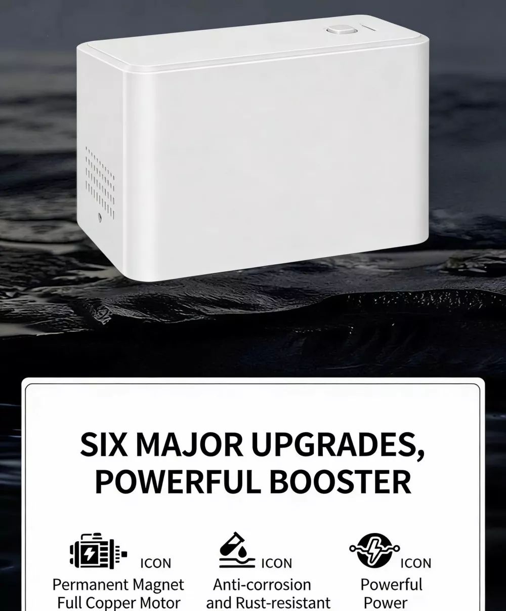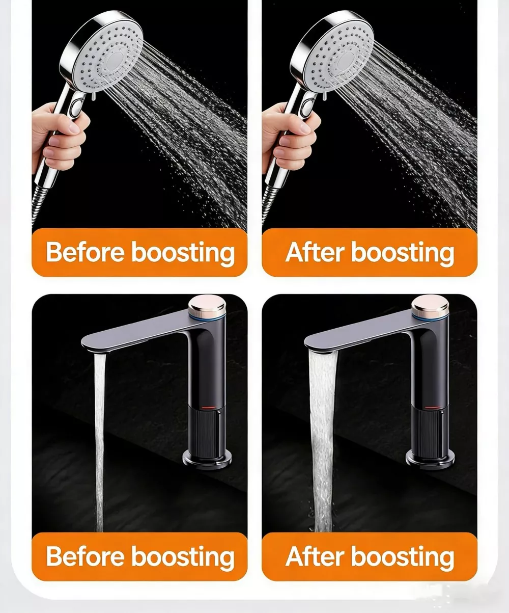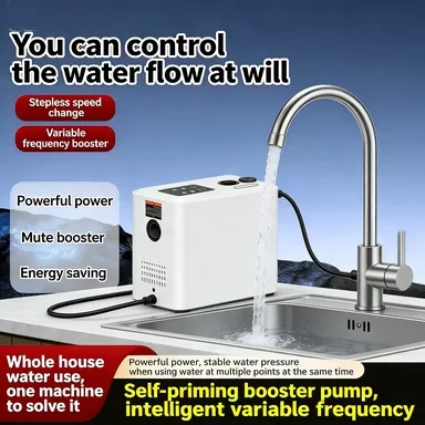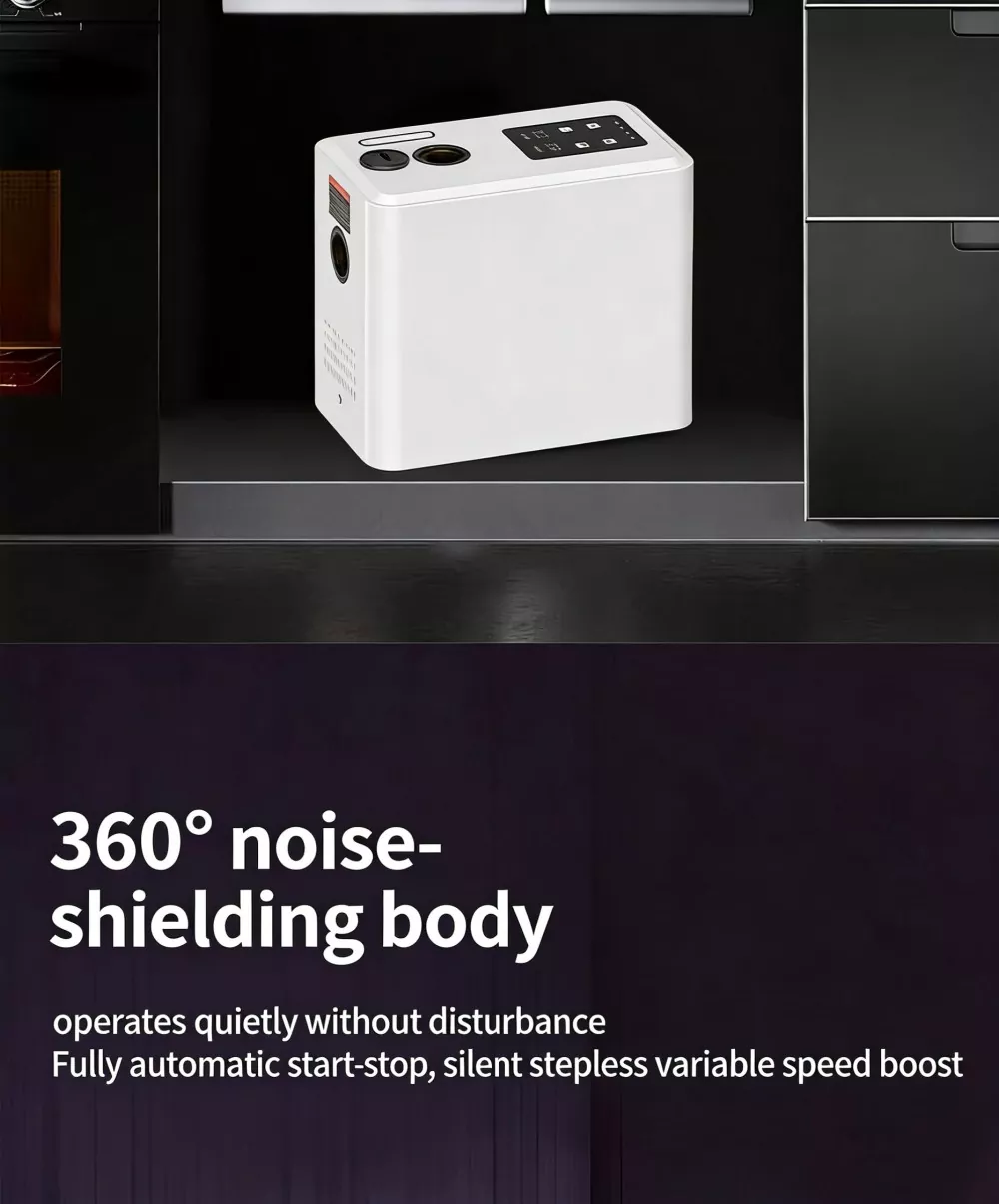 Высокоскоростной двигатель: встроенный высокоскоростной двигатель со скоростью 6500 об/мин обеспечивает импульсную мощность, обеспечивает сильную и стабильную подачу воды с большим расходом и полностью решает проблему недостаточного давления воды в быту.