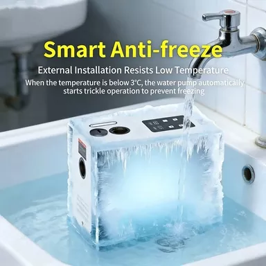 Интеллектуальная защита от замерзания: благодаря интеллектуальной системе измерения температуры он автоматически работает на низкой скорости, когда температура окружающей среды ниже 3 ℃, эффективно предотвращая замерзание и растрескивание корпуса насоса и водопроводных труб в холодную погоду.